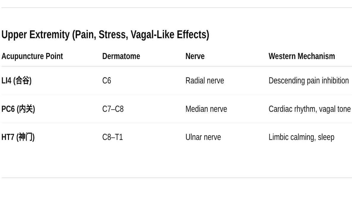 Acupuncture is not “alternative” to Western neuromodulation—it is an earlier, manual form of it, grounded in the anatomy and physiology of the nervous system. By stimulating specific points that align with neural pathways and reflex circuits, it influences how the body processes pain, stress, organ function, and even mood.